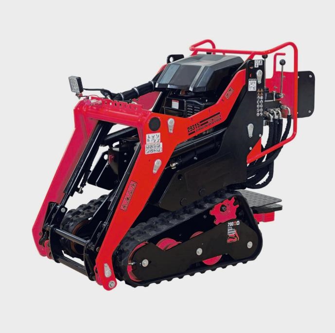 La trazione idrostatica a cingoli assicura una mobilità eccellente anche su terreni difficili, mentre la capacità di sollevamento di 200 kg offre la flessibilità necessaria per gestire diverse operazioni con numerosi attrezzi intercambiabili come pale, forche, pinze e trivelle. Con un'altezza massima di sollevamento di 2,4 m, è ideale per sollevare e posizionare carichi in diverse situazioni operative.